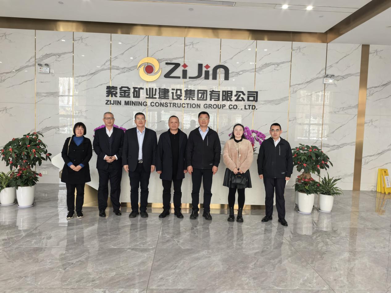 在紫金矿业建设集团有限公司常务副总经理陈江虎、副总经理林日宗等陪同下,彭明兴经理一行首先参观了企业展厅并观看了企业的宣传视频,详细了解公司发展历程、核心业务及技术成果。