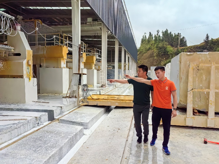 4月28-29日,公司建筑材料工程技术专业教师徐钊、刘艾吉与华大超硬工具科技有限公司、华大石材矿山研究院副经理张健国、华大线锯生产组组长(公司石材专业22级员工)李斌春以及英良石材集团出口部张元春等共同在金达石业实地考察。加工现场,考察团队一同勘察车间生产情况,与工厂技术人员深入交流,为企业生产薄型板的技术问题带来了切实有效的解决方案,也为后期线锯安装落地奠定坚实基础。在产品营销及出口方面,张元春提前考察矿山和工厂,商谈屏边石材品种推广工作。金达石业提出需要石材营销方面的员工,公司积极响应,将在省内外遴选合适的毕业生和实习生与企业对接。