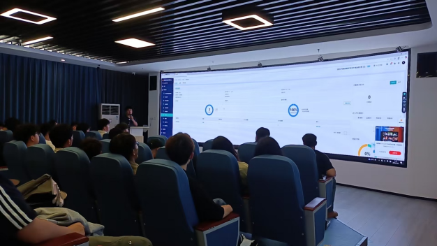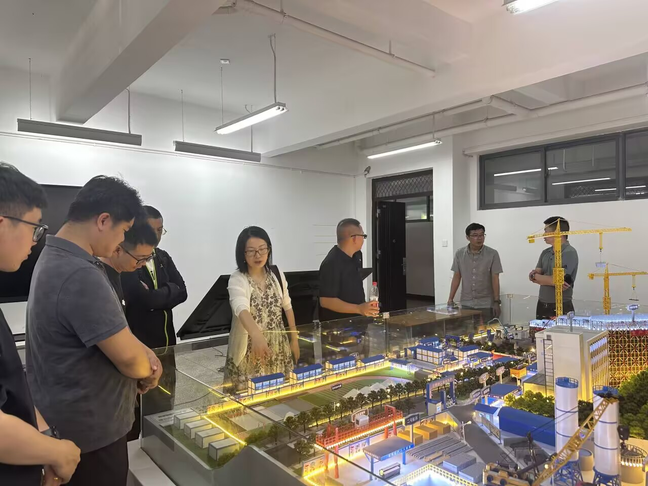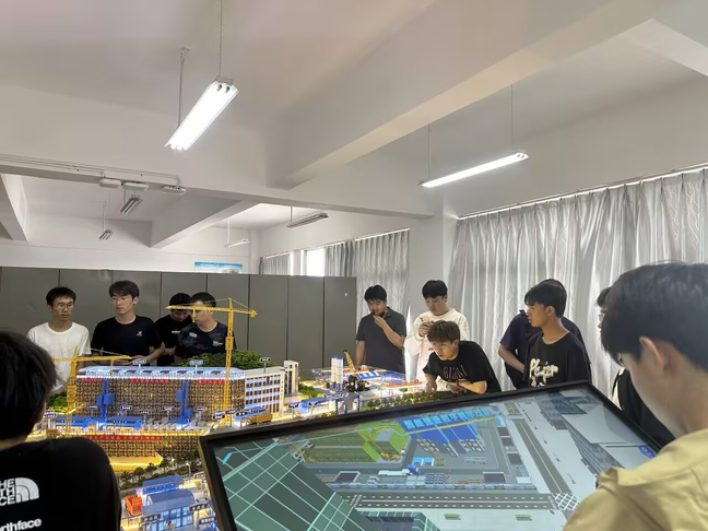 在明尚楼204教室,开展了智慧工地的前沿展示与交互式教学。通过智慧工地AR固态沙盘,员工借助特定设备实时查看工地关键数据,体验AR技术对施工现场管理的赋能,并在智慧工地数字教学沙盘上操作高度仿真系统,体验智慧工地规划与监控。