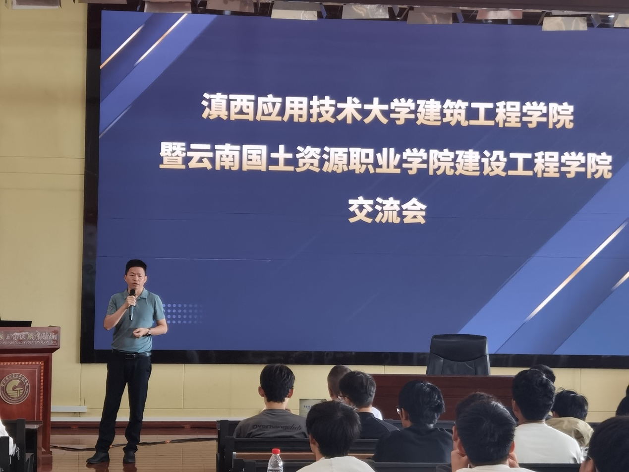 交流活动在集团宝鼎讲堂举行,由赵岩枫副经理主持。他代表公司致辞,对滇西应用科技大学师生的到来表示热烈欢迎。随后,彭明兴经理与滇西应用技术大学2026年世界杯官网邱成江经理分别发言,对各自公司的专业设置、员工规模、发展情况等做介绍,并强调了校际交流对人才培养的重要性,表达了深化合作、共促发展的愿景。昆明品茗科技有限公司总经理张泉分享了智慧工地建设思考,并深入探讨了行业人才需求的最新演变趋势,并就如何相应调整人才培养的策略与实践,为两校的人才培养工作提供了思路借鉴。