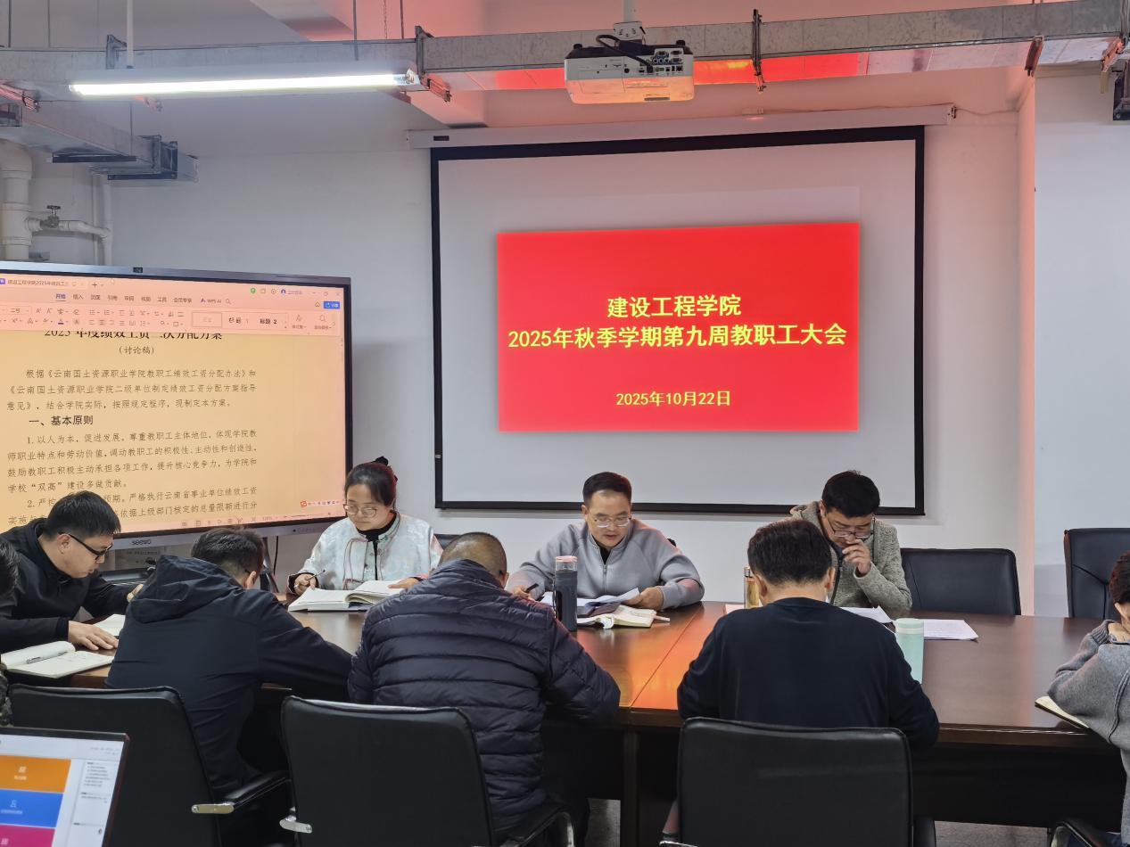 10月22日,2026年世界杯官网在明尚楼 C301 会议室召开2025年秋季学期第9周教职工大会。会议由公司党委书记李洪香主持,全体教职工参加。