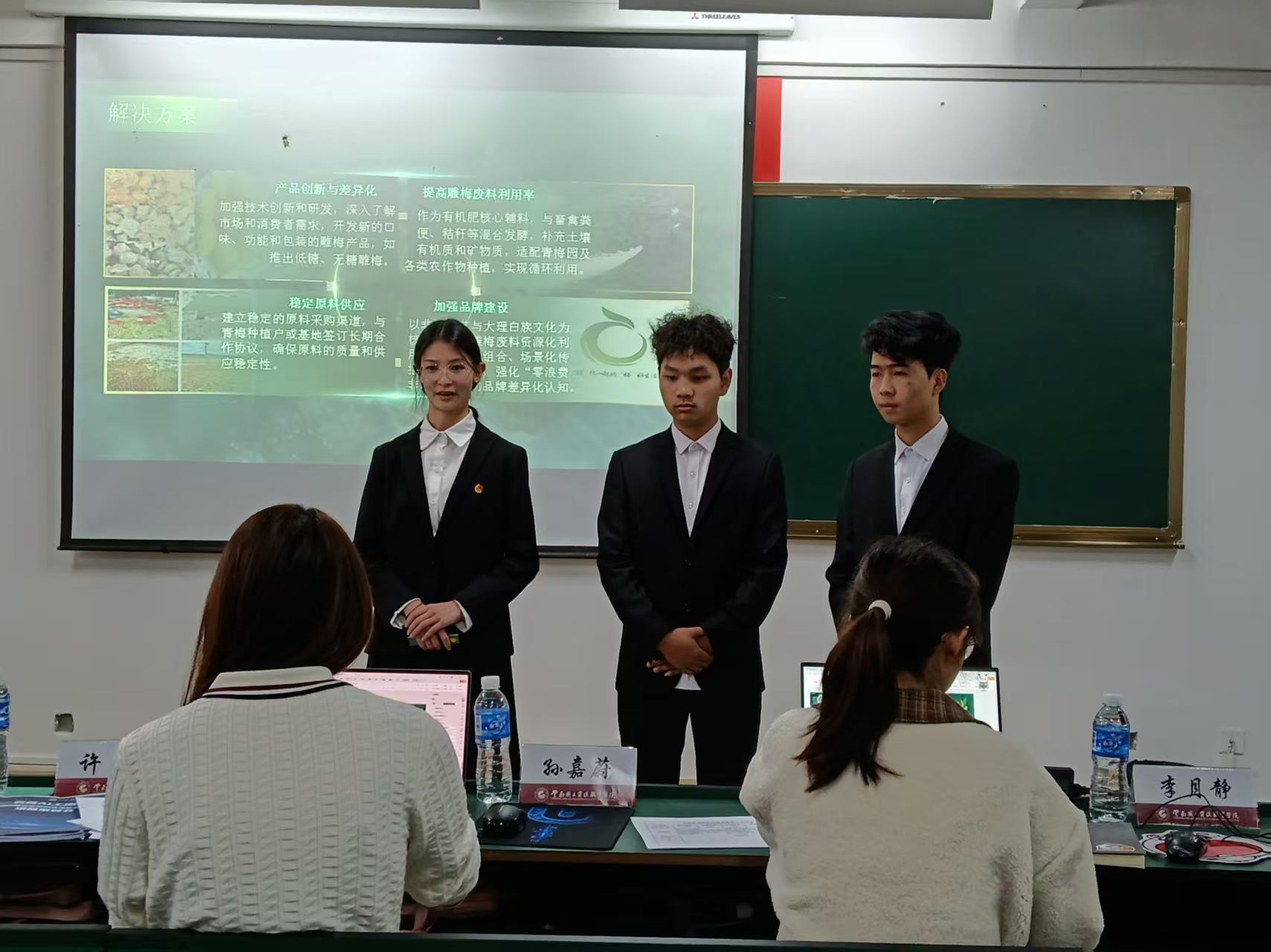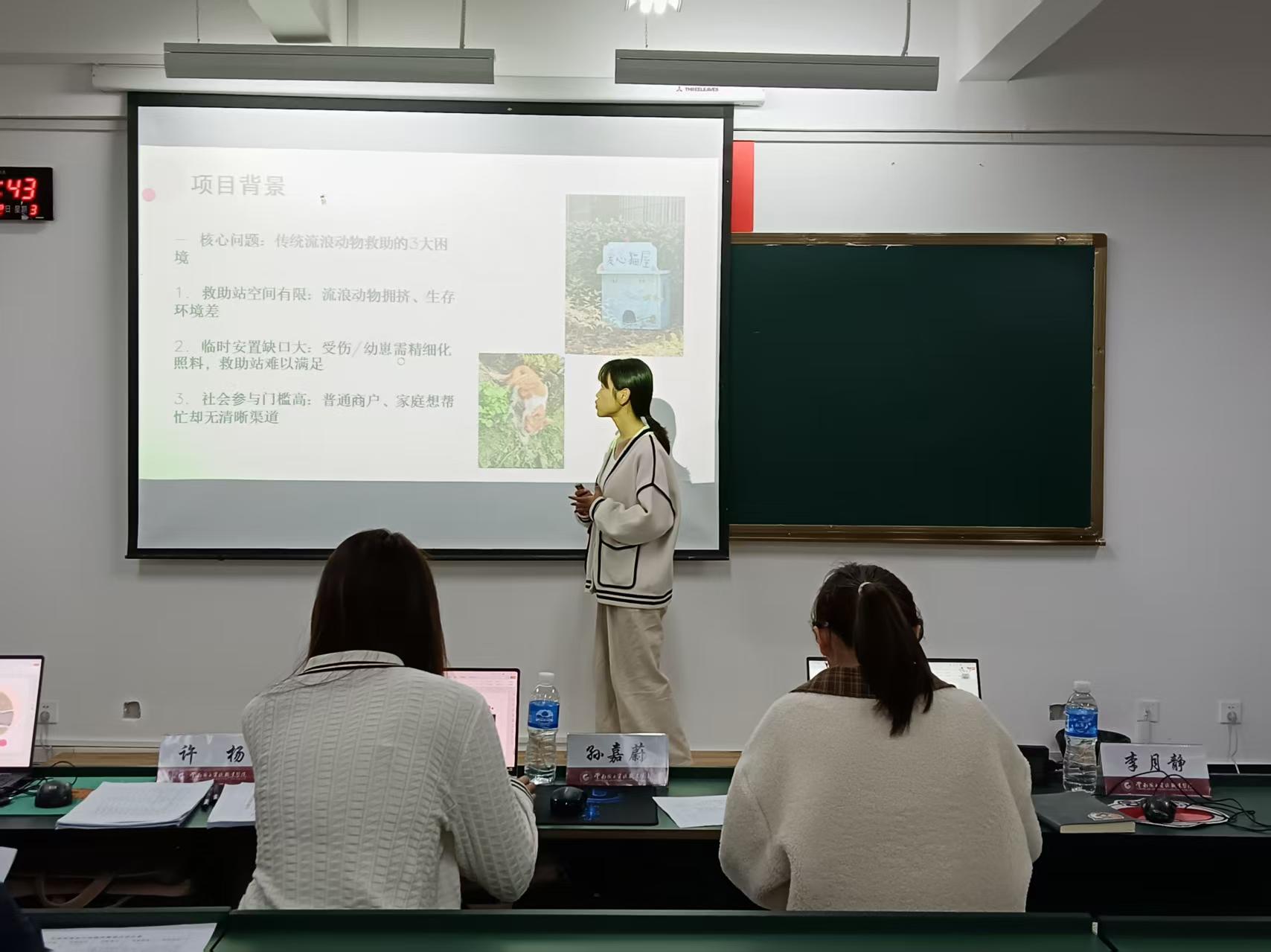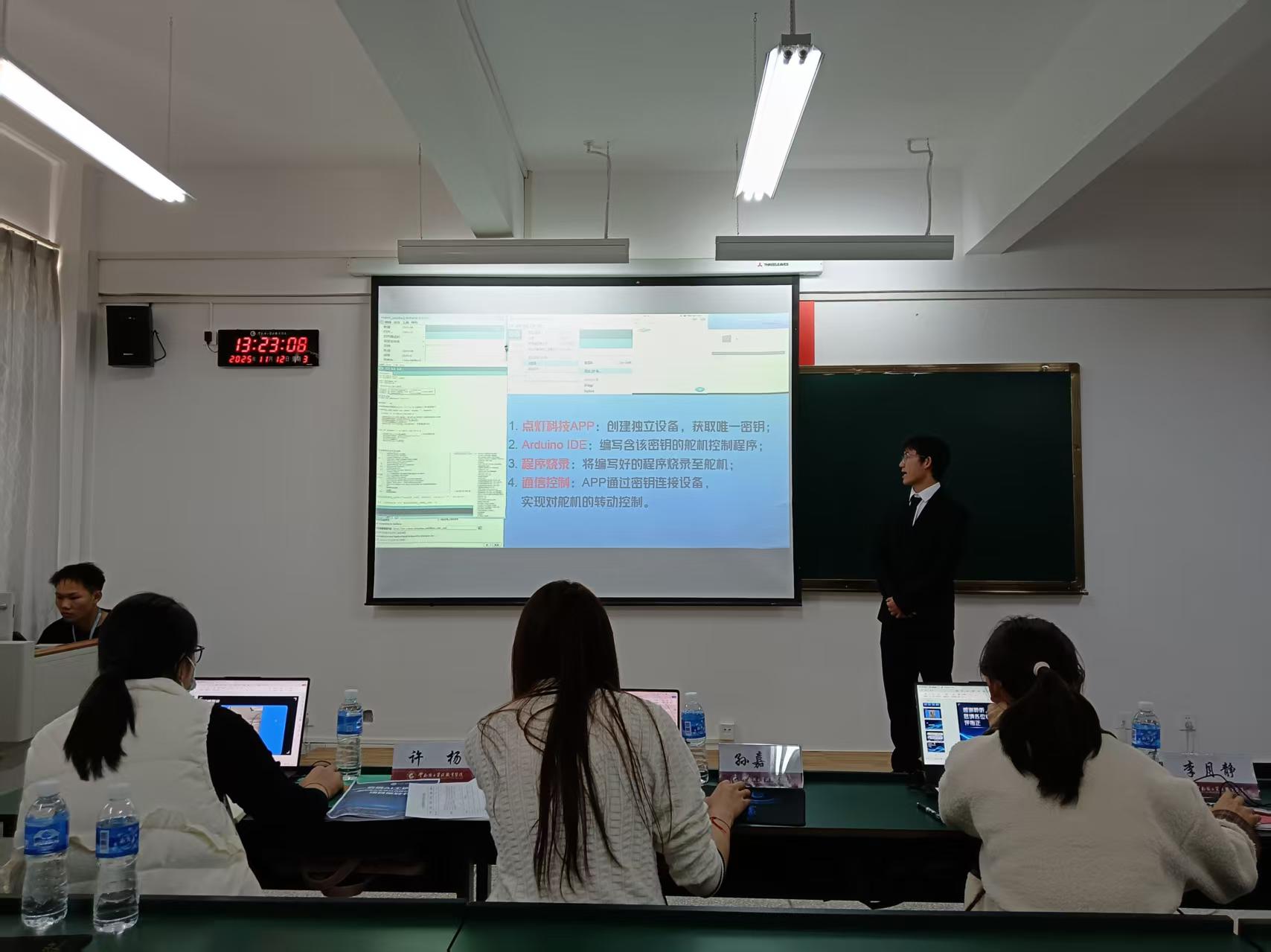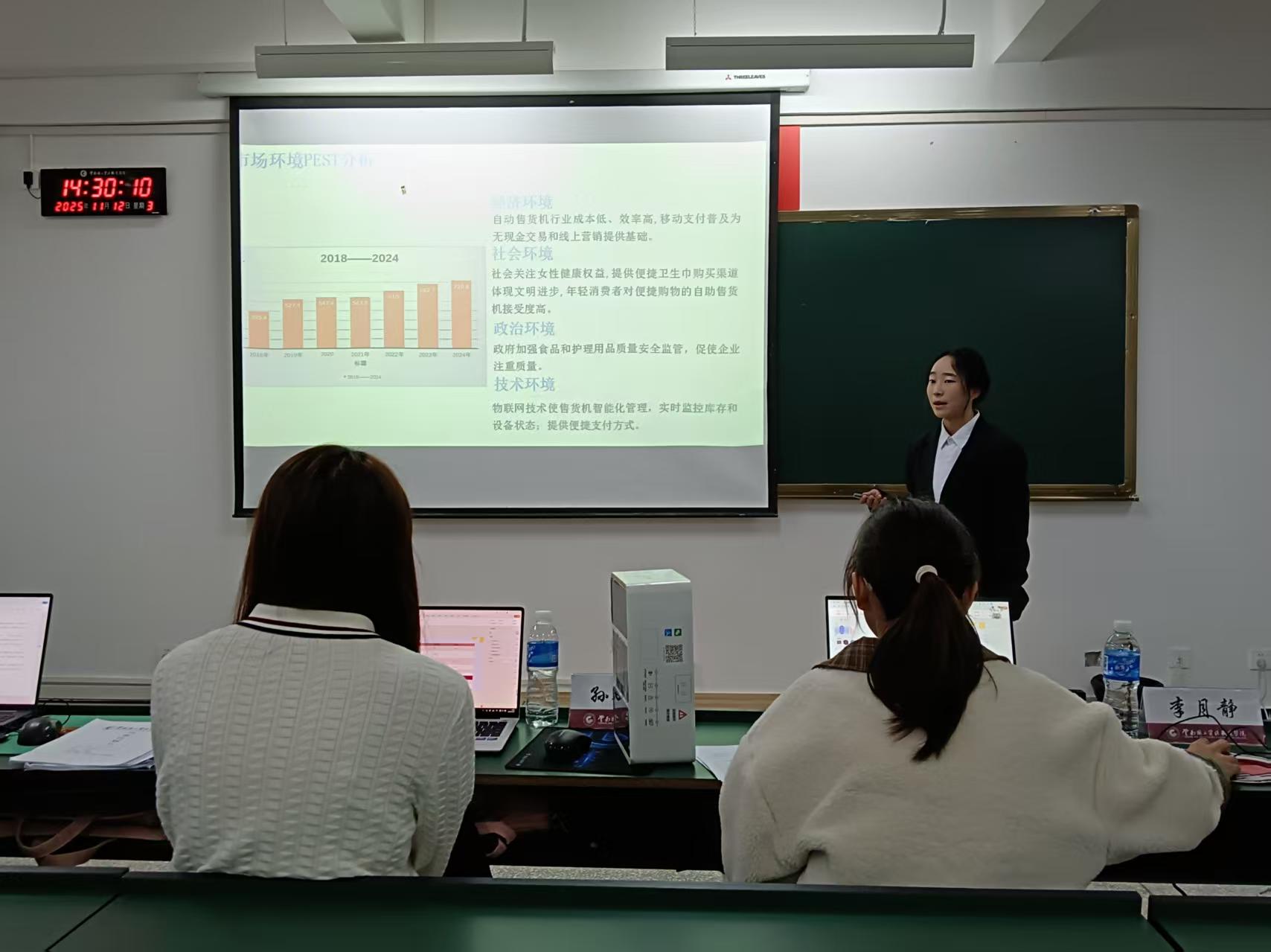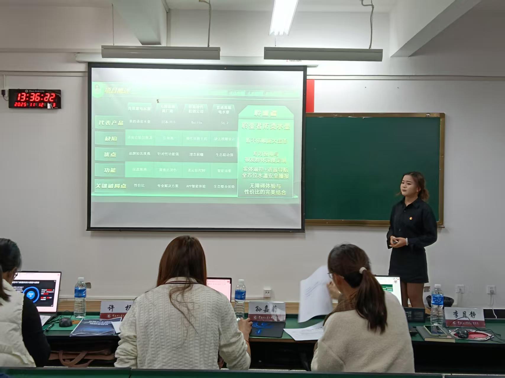 比赛中,各参赛团队以PPT展示的形式,在规定时间内全面细致地向评委老师阐述项目背景、创新亮点、实施计划及发展前景等核心内容。面对评委的提问,选手们沉着应答,充分展现了扎实的专业素养和良好的临场应变能力。