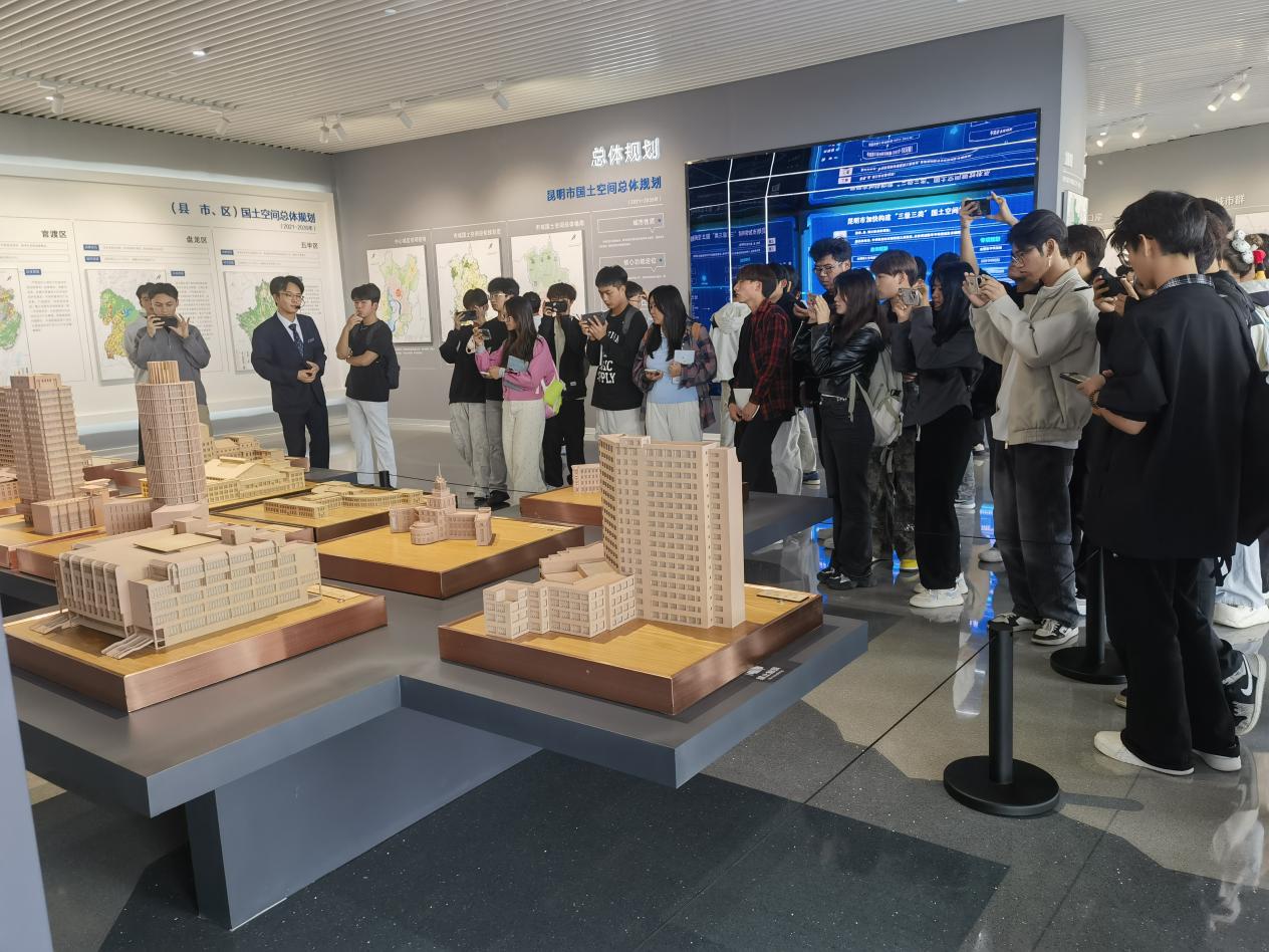 在昆明市规划展览馆,通过精密沙盘和多媒体影像动态了解昆明过去几十年的城市发展脉络与未来规划蓝图。同学们聚焦于大型城市基建项目的空间经济性,深入了解昆明建筑文化和工程建设历程,为管理实践提供了具象参考。