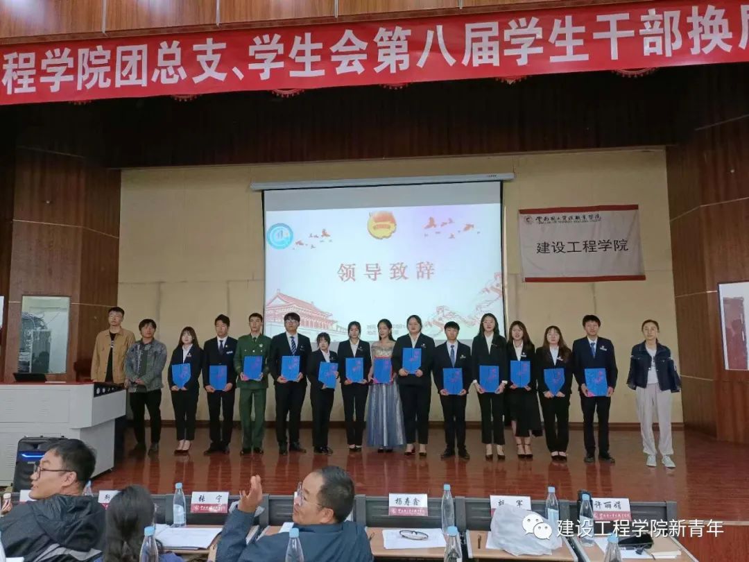 选举大会之前,公司领导和老师给21级团总支、员工会干部们颁发了聘书,对他们未来的人生送上了美好的祝愿。