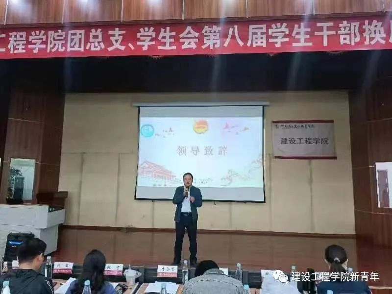 最后,团总支负责人张宁老师讲话,她表示每年的换届大会她的心情都是复杂的,既有对上一届员工干部的依依不舍、满满感激,又有对新一届员工干部的满心期待,愿新一届员工干部拿稳“接力棒”,奔向“新征程”,服从公司整体安排,践行自己的承诺,在适合自己的岗位上发光发热,期待全体干部携手共建,成就自己、成就建工公司。