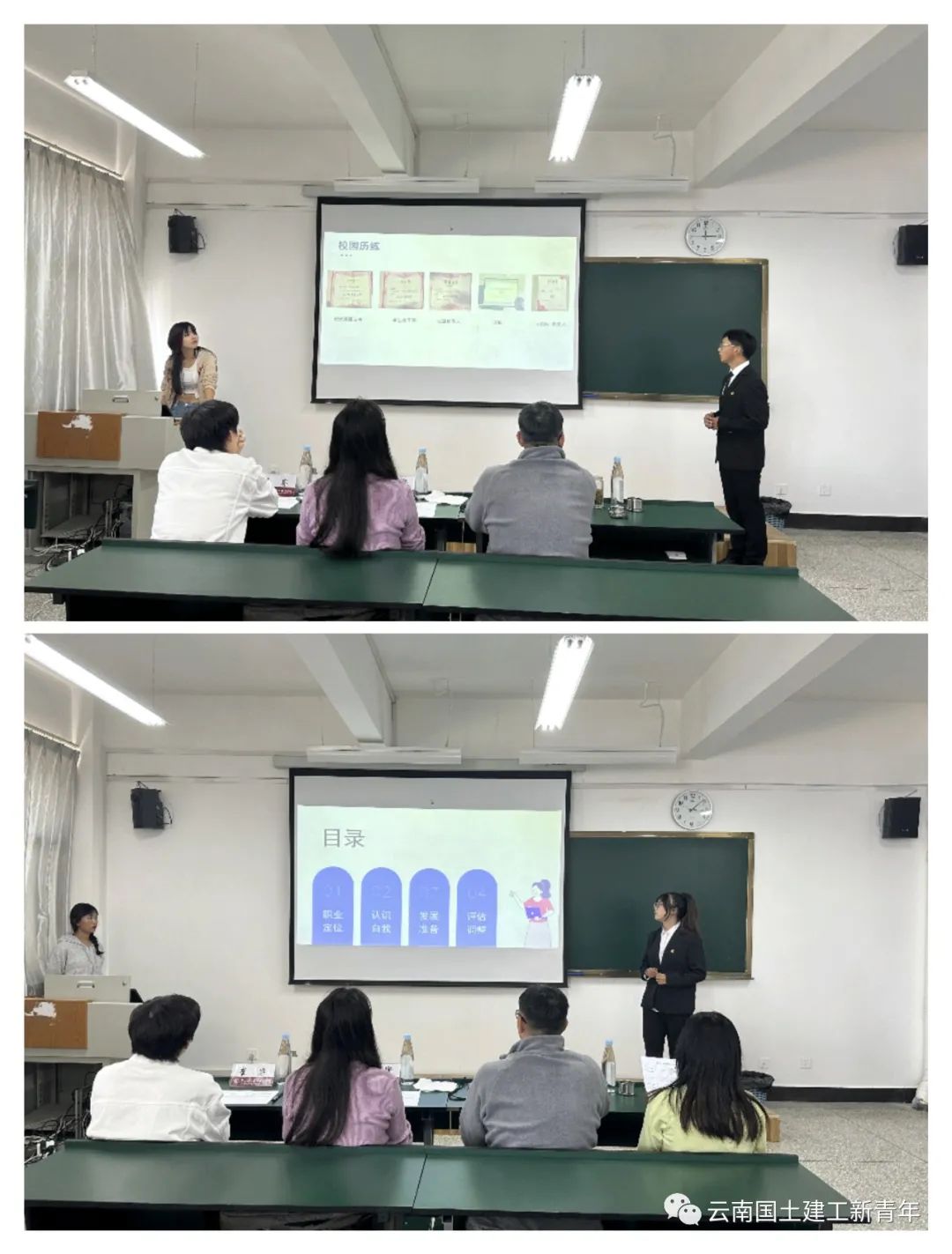 比赛伊始,各参赛选手依次上台,对未来蓝图进行规划与陈述。选手们有着明确的自我分析,能结合自身所处的环境设立合理的职业目标。整个比赛过程紧张有序,同学们的作品整体结构完整、逻辑清晰、详略得当、重点突出、职业生涯目标制定合理。评委们针对选手陈述进行提问,并给出意见建议。