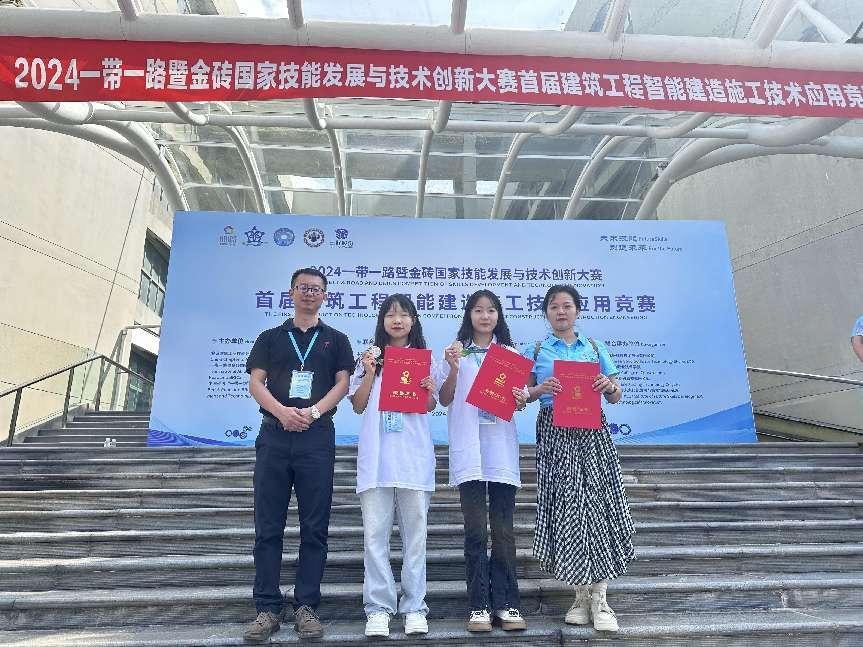 2024一带一路暨金砖国家技能发展与技术创新大赛首届建筑工程智能建造施工技术应用赛项全国总决赛于2024年9月27日至28日在浙江杭州举行。由公司2026年世界杯官网老师崔译丹带队,2022级员工冷雨桐、王雄彦组成的参赛队伍参加了比赛,经过激烈角逐,公司员工荣获二等奖。据悉,本赛项为建筑施工领域在金砖大赛平台举办的首届赛事,共有来自全国高职院校的282支队伍参赛,是同类大赛中属覆盖区域最广、参赛规模最大、参与人数最多的赛项之一。