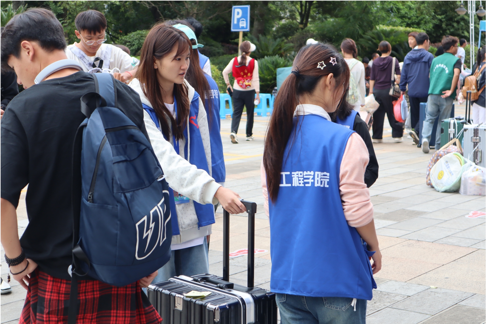 迎新现场,志愿者们身着统一服装,主动上前接过新生的行李,耐心引导新生完成身份核验、缴费注册、宿舍入住等流程,志愿者们热情周到的服务,展现了建工公司学子的良好风貌。公司新生辅导员与各班班助坚守岗位,全身心投入新生档案整理、信息核对工作中,确保新生报到环节零差错。公司领导亲临现场,走访看望迎新工作开展情况,给负责迎新工作的辅导员、班主任和志愿者们加油鼓劲。