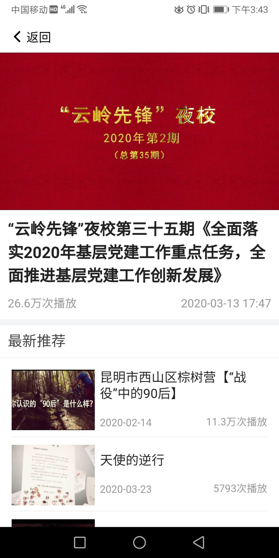 3月23日,在疫情防控的特殊时期,国土公司党总支组织各支部通过“云岭先锋”APP点播观看第2期夜校节目。夜校节目围绕“全面落实2020年基层党建工作重点任务,全面推进基层党建工作创新发展”这一主题展开,省委组织部的同志回顾了四个主题年云南省基层党建工作取得的实效,强调了今后基层党建工作的重点,要进一步增强政治担当、切实履职尽责、改进工作作风,并要求各级党组织和广大党员锐意进取、勇担使命,为实现第一个百年奋斗目标,谱写中华民族伟大复兴中国梦的云南篇章作出新的更大贡献。各支部党员结合新学期各自工作、学习实际,作了线上交流。大家一致表示,乌云遮不住升起的太阳,疫情挡不住春天的脚步,在新的学期,将发挥共产党员先锋模范作用,以自身的努力争取更大的成绩。