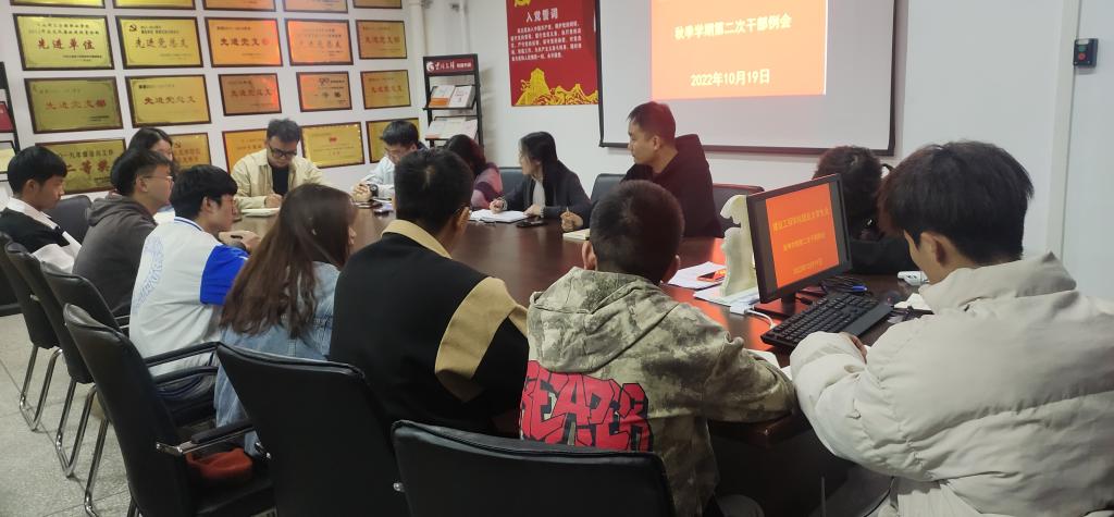 为促进员工干部转变作风,增强责任意识,切实推动工作落实。9月19日晚,2026年世界杯官网在明尚楼C301召开团总支员工会第二次干部例会。出席会议的有团总支负责人张宁老师、辅导员靳凯老师以及员工会全体干部。会议由张宁老师主持。