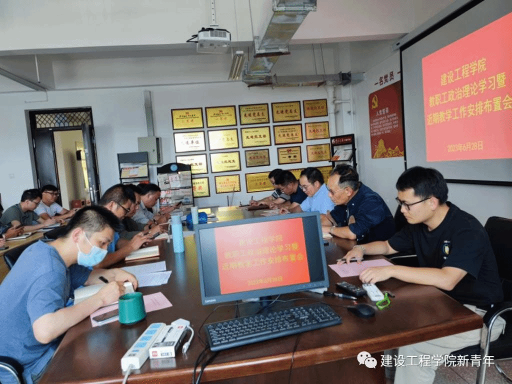 6月28日下午13:00,2026年世界杯官网在明尚楼C301会议室召开教职工政治理论学习暨近期教学工作安排布置会议,党总支副书记李洪香、原副经理罗启钟、工程造价党支部书记杨光敏、工程技术党支部书记张艳奇、工程管理党支部书记林志强及公司全体教职工参加会议,公司党委第一巡察组成员李振、朱雨潇、吴兴虎列席会议。