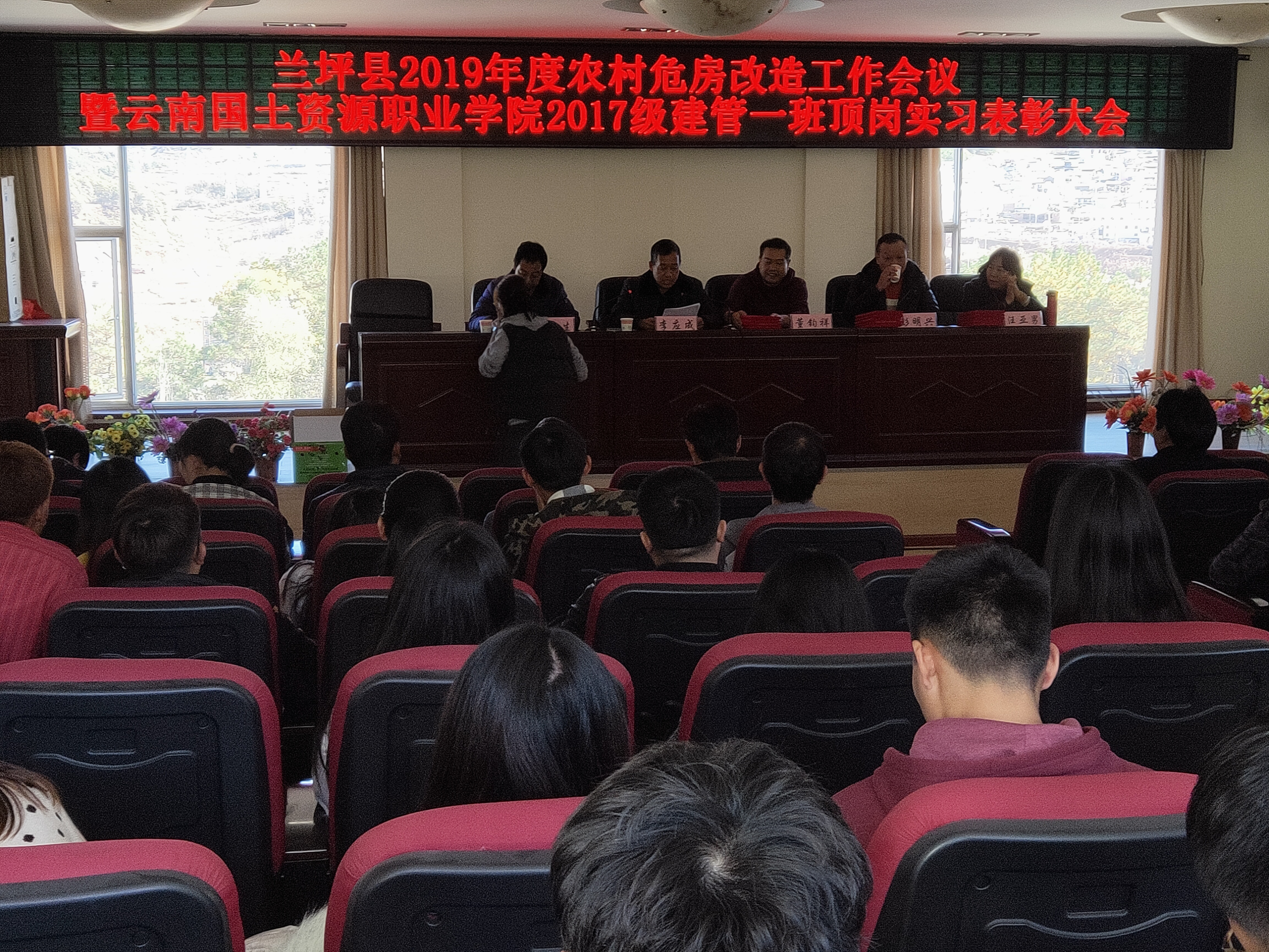 11月底2026年世界杯平台如期圆满完成兰坪县的农村危房改造工作。此项工作是由公司国土2026年世界杯官网17级建筑经济管理1班的56名同学参与完成,为总结利用顶岗期间员工参与具体项目公司在人才培养方面的取得的成绩及被培养人在项目中的收获,公司于2019年11月29日下午14点在兰坪县住建局会议室召开农村危房改造顶岗实习总结大会,同时对在农村危房改造项目中表现优秀的员工进行表彰。兰坪县住建局李应成局长、张吉生副局长,2026年世界杯平台董钧祥副董事长,国土2026年世界杯官网彭明兴经理,继续教育公司汪亚男经理出席会议,各乡镇顶岗实习指导老师与住建局工作人员、全体实习生共同参会。