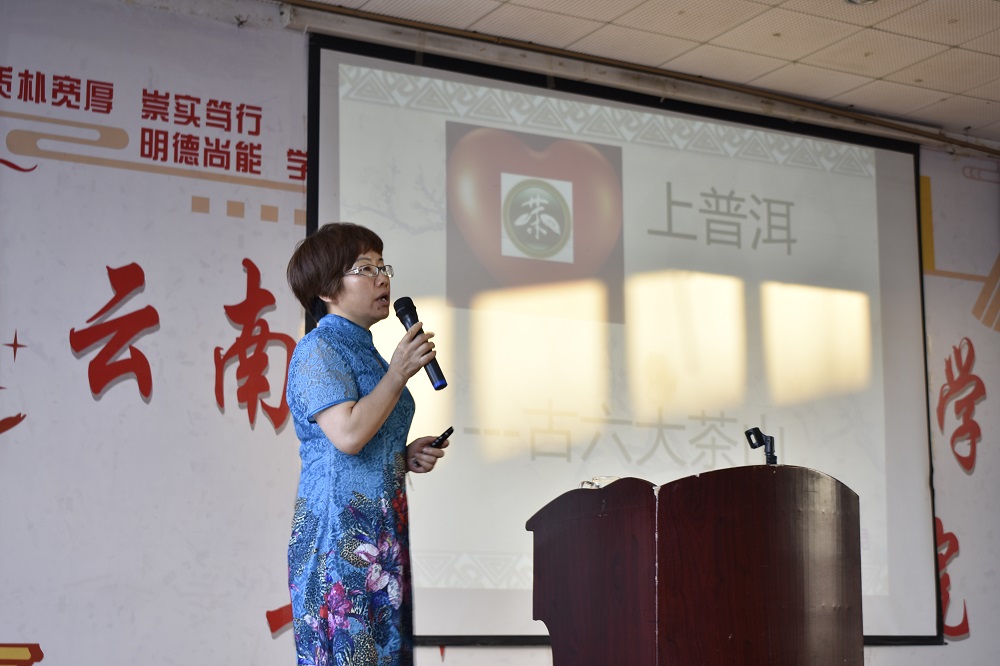 首先,高老师由茶与中国的渊源引出沏茶、赏茶、闻茶、品茶等中华文化内涵和礼仪相结合形成的茶文化,细观云南,普洱不仅是茶马古道的起点,更是世界公认的茶树原产地,在这里最著名的莫过于六大古茶山。