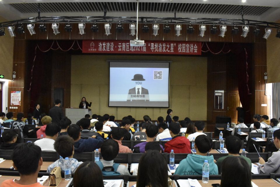 招聘会伊始,渝发建设有限公司云南区域培训经理通过PPT展示为同学们介绍了渝发建设有限公司,使学员们对该公司的发展历程、业务方向、以及公司实力有了直观的认识。紧接着,培训经理还为学员们讲解了渝发建设有限公司此次项目详情以及员工的薪资待遇、培训计划等。