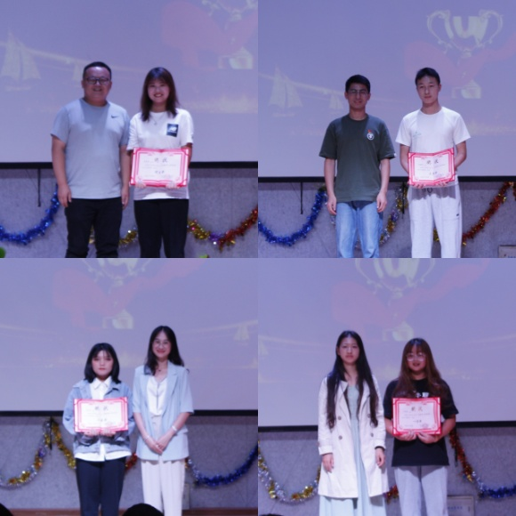 接着到了表彰环节,微党课大赛奖、1958活动优秀奖、资助育人宣传画奖、红歌比赛奖、员工会优秀干事奖。同学们用才智和学识取得今天的收获,又将以明智和果敢接受明天的挑战,愿同学们永葆一往无前的精神。