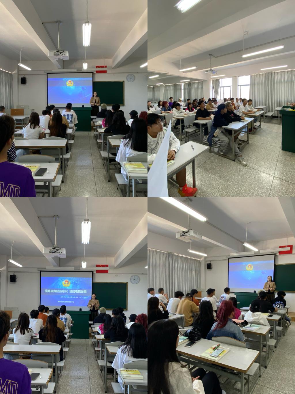各班班主任采用PPT宣讲的形式对电信网络诈骗的种类、特点、处理方法进行了重点讲述,通过大量真实案例介绍了利用刷单、冒充电商物流客服、虚拟购物、注销“校园贷”、网络游戏虚假交易等多种诈骗手段,并针对每种诈骗手段做出了相应的安全提醒,并强调,对任何涉及到钱财的可疑信息、电话,一律做到不听、不信、不转账、不汇款。提高警惕性,在遇到疑问时要第一时间联系辅导员或拨打校园报警电话。同时,要求全体同学务必安装 “国家反诈中心”APP,并进行注册绑定,打开预警提醒,并积极向家长、身边亲朋好友宣传防诈骗知识。