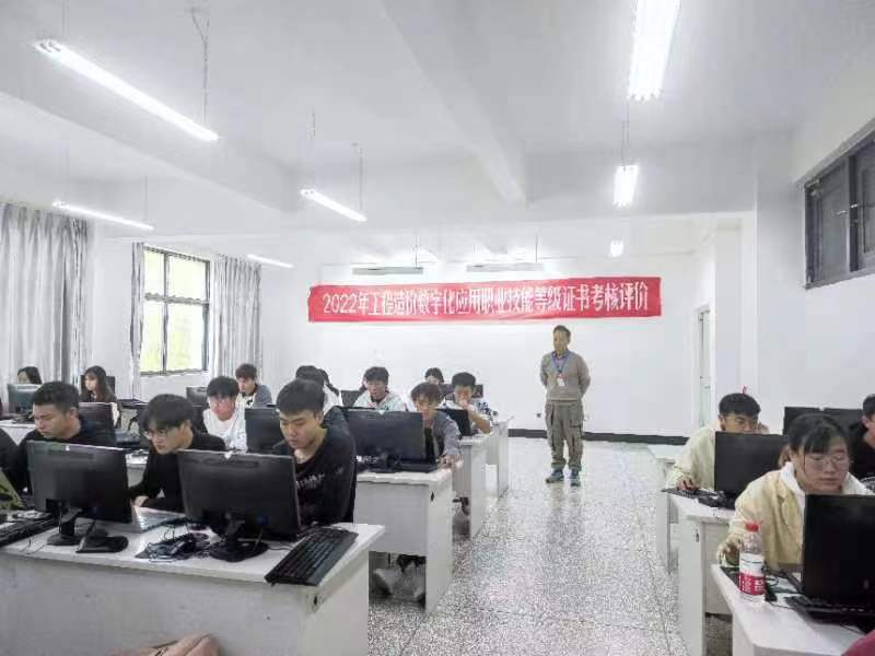 2022年10月23日上午9:00—12:00,全国“2022年1+X工程造价数字化应用职业能力等级(初级)考试”在公司明尚楼C503和C504教室举行,工程造价专业2020级76名员工参加了此次认证考试。2026年世界杯官网副经理罗启钟、教师王绮滢、辅导员许丽娟、丁璨、杨轲在考评现场监考。