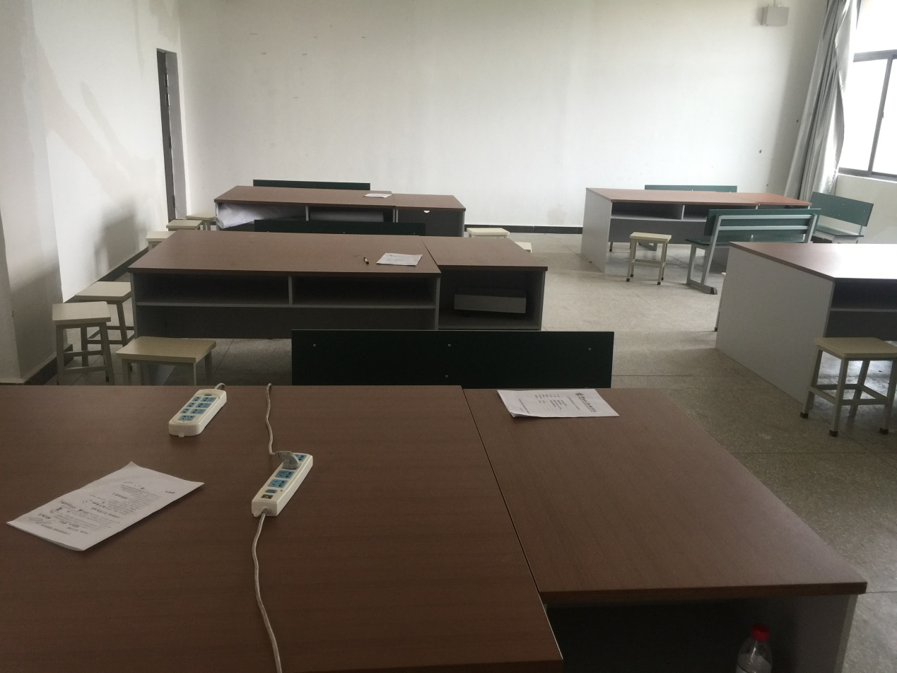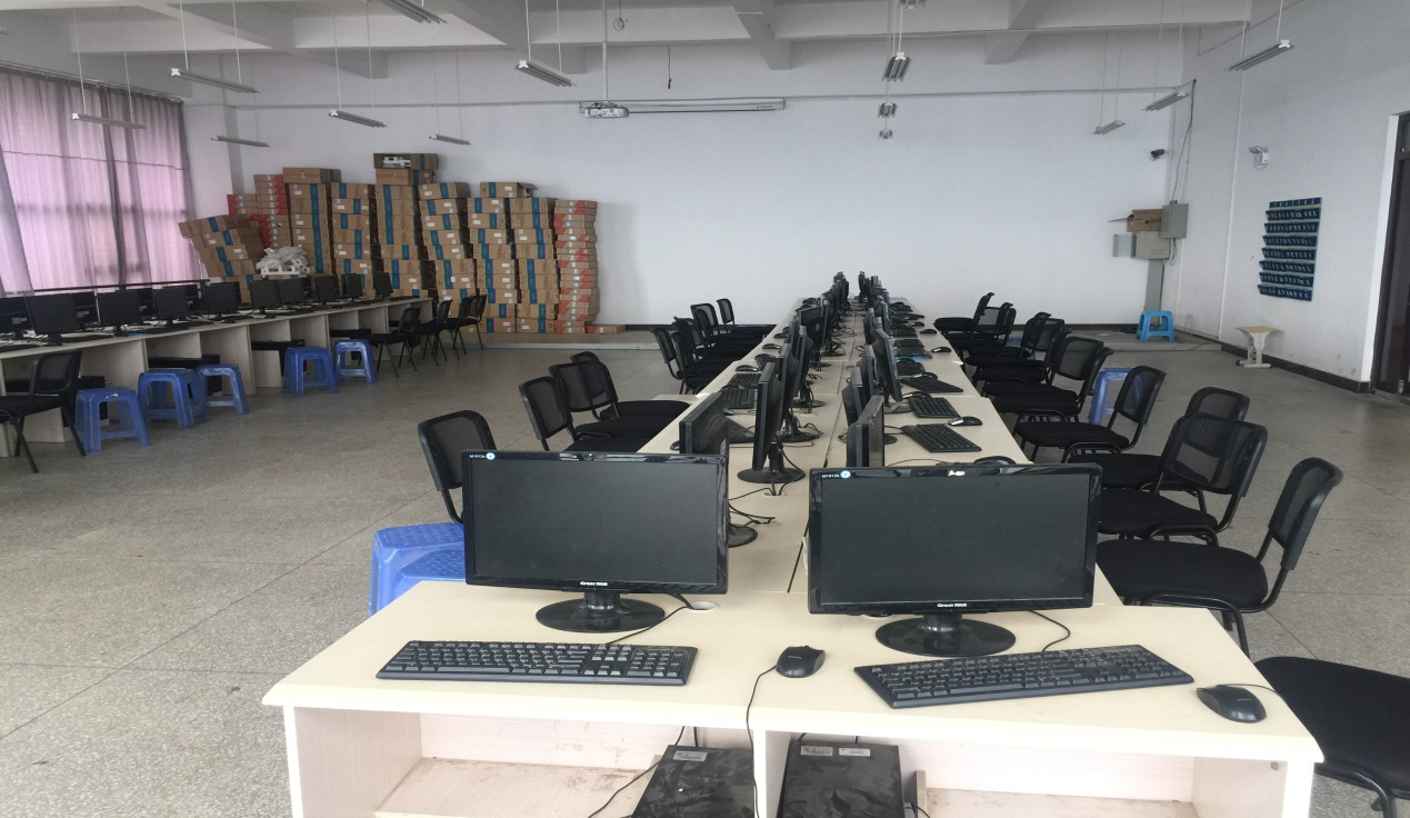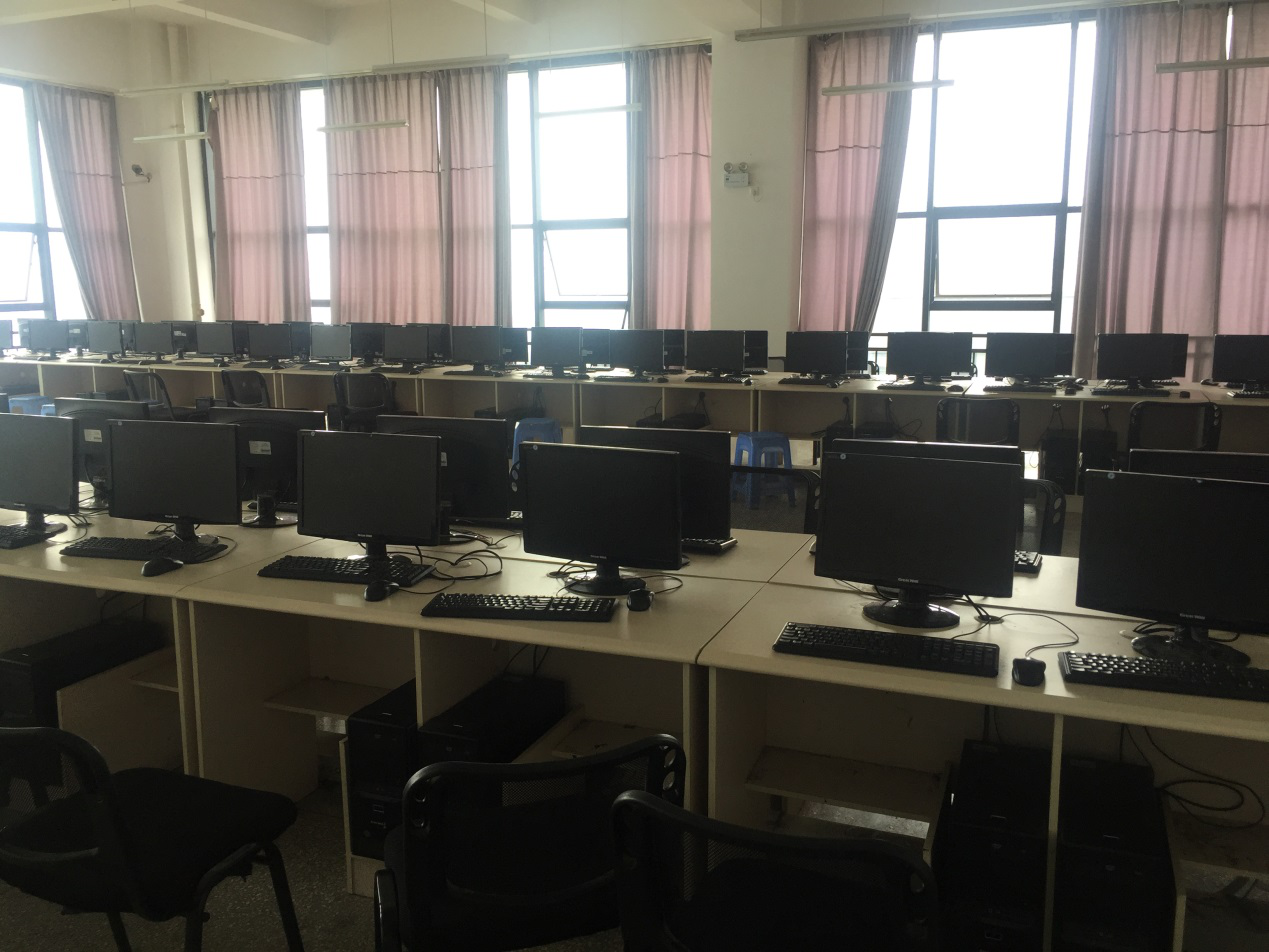 3、跨专业平台实训室B实训室(笃行楼408):现有长城牌台式计算机60台(套) 、电脑桌32张、电脑椅60把,可容纳60名同学。